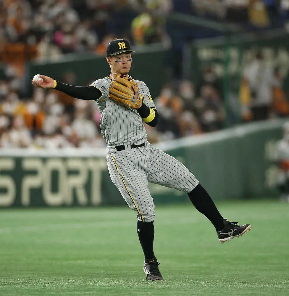 ああ、大暴投…三塁スタメンの阪神・佐藤輝が3回に一塁悪送球で2個目失策