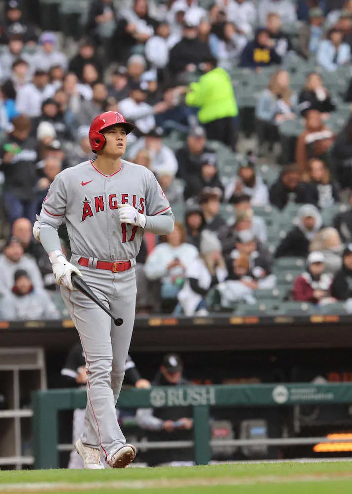 <ホワイトソックス・エンゼルス>3回無死二、三塁、カイケルの前に二ゴロに倒れるも打点を挙げる大谷(撮影・光山 貴大) Photo by スポニチ 大谷翔平 「右股関節の張り」で途中交代、3打数無安打1四球で2試合連続ノ… ギャラリーで見る この記事のフォト 2022年05月02日の画像一覧 もっと見る 2022年05月02日の画像をもっと見る