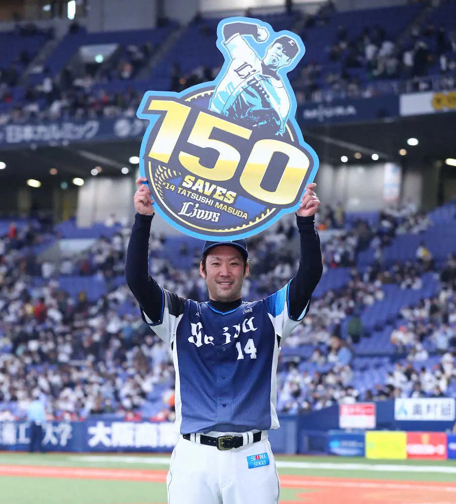 西武の守護神・増田が球団初の150セーブを達成した。1点リードの9回に登板。安打と四球などで1死二、三塁も、後続を断ち切った。「(ピンチを招いて)“やってもーた”と。でも、一人一人できることを丁寧にやろうと思った」。