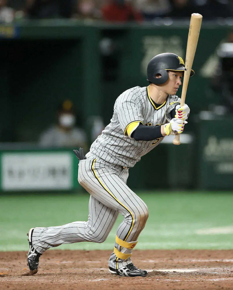 <巨・神>9回、適時二塁打を放つ近本(撮影・河野 光希)