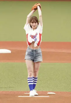 西武でスポニチデー開催 競馬G1予想のほのかヘソ出し始球式 ノーバンならず「ちょっと悔しい」