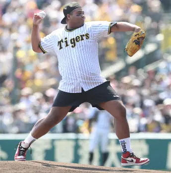 熱烈虎党アントニーが“エール始球式” ビッグウェーブ期待「15連勝、20連勝、優勝して」