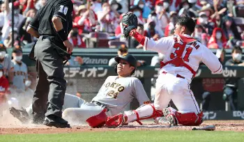 またまた刺した!広島が3イニング連続で本塁生還阻止 中村健×2、西川も続いた
