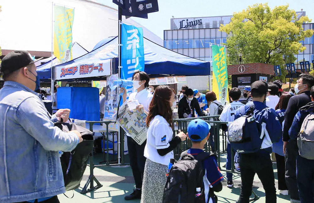 <西・ロ>贈呈式を行うスポニチ・小菅社長(右)とほのか(撮影・尾崎 有希) Photo by スポニチ 西武―ロッテ戦「スポニチスペシャルデー」特設ブース盛況 抽選会に2000人 ギャラリーで見る この記事のフォト 2022年05月04日の画像一覧 もっと見る 2022年05月04日の画像をもっと見る