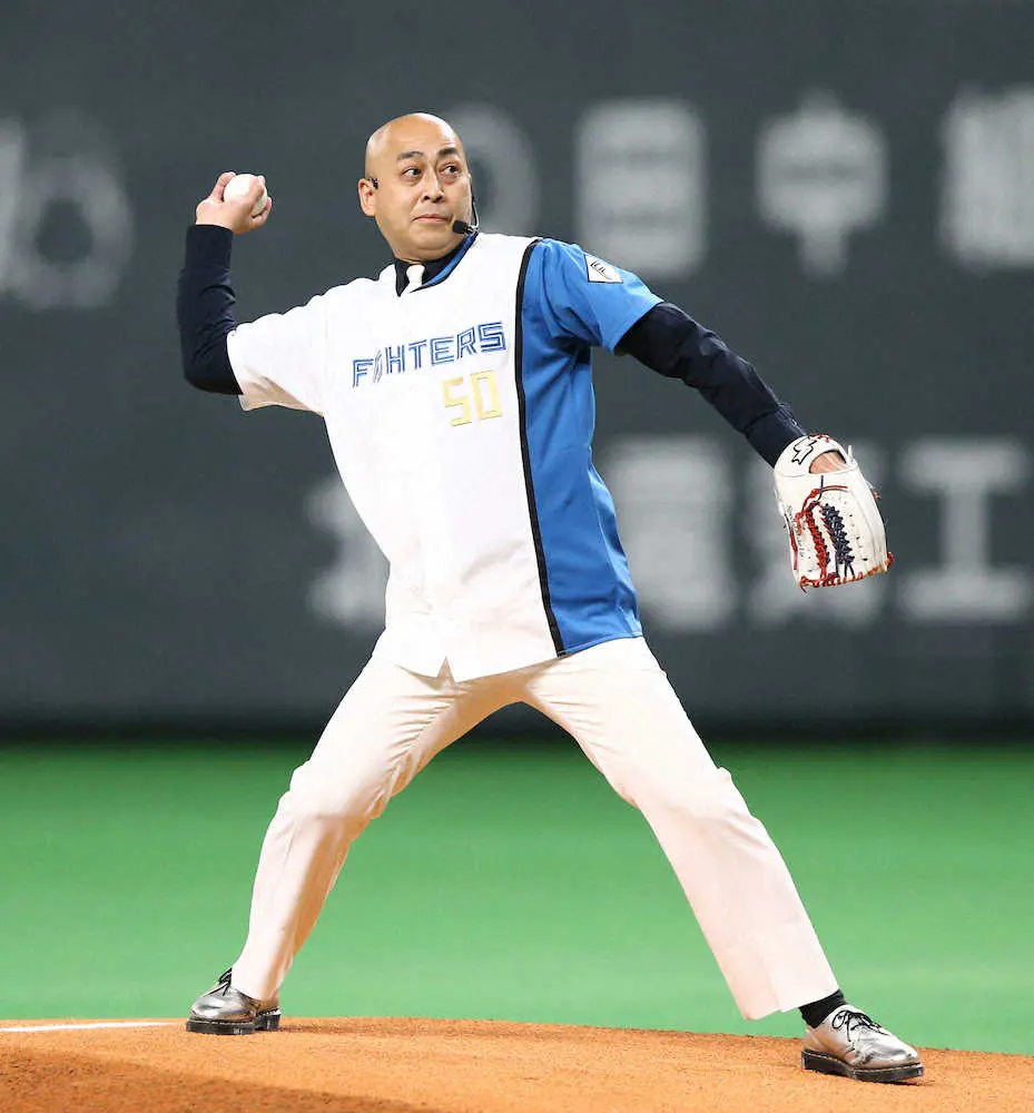 【画像・写真】錦鯉が日本ハム戦で始球式 長谷川が“こんにちわ投法”でノーバウンド投球披露