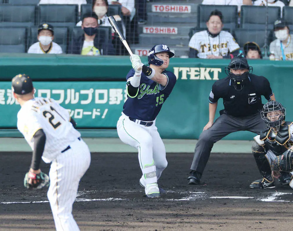 <神・ヤ>3回2死三塁、塩見は中前に先制適時打を放つ(撮影・大森 寛明) Photo by スポニチ ヤクルト今季初の5連勝呼んだ42歳石川 5回無失点の粘投で2勝目 甲子園4… ギャラリーで見る この記事のフォト 2022年05月04日の画像一覧 もっと見る 2022年05月04日の画像をもっと見る