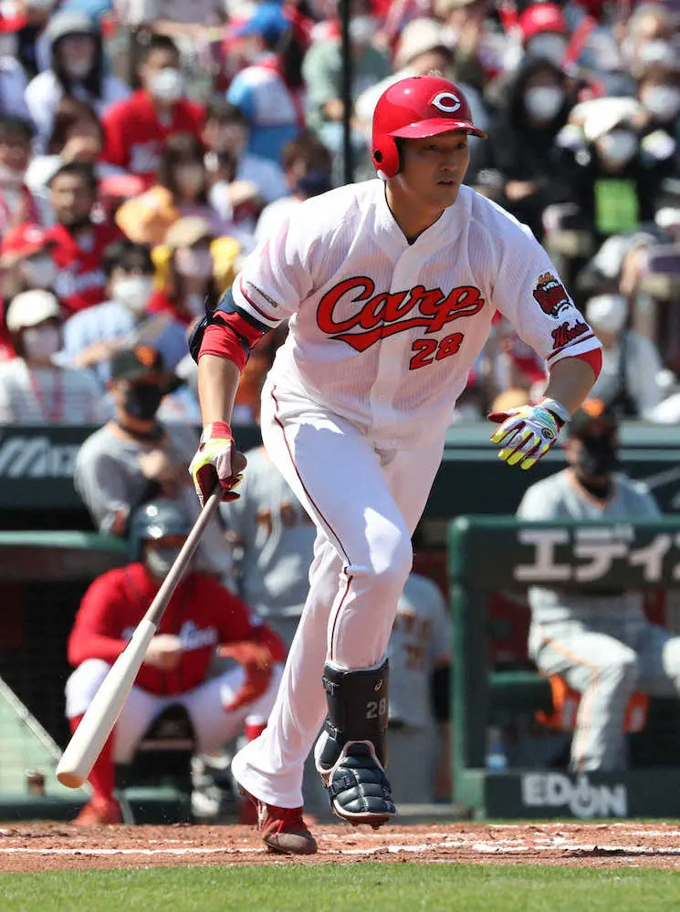4点を先取した初回2死一、二塁では一塁手・中島のグラブをはじく強烈なライナー。4月20日の巨人戦で先発した前日に、菊池涼を通じて巨人・坂本からバットを譲り受けており「坂本さんのバットなら打てそう。名前で打たせてもらった」と破顔一笑だった。
