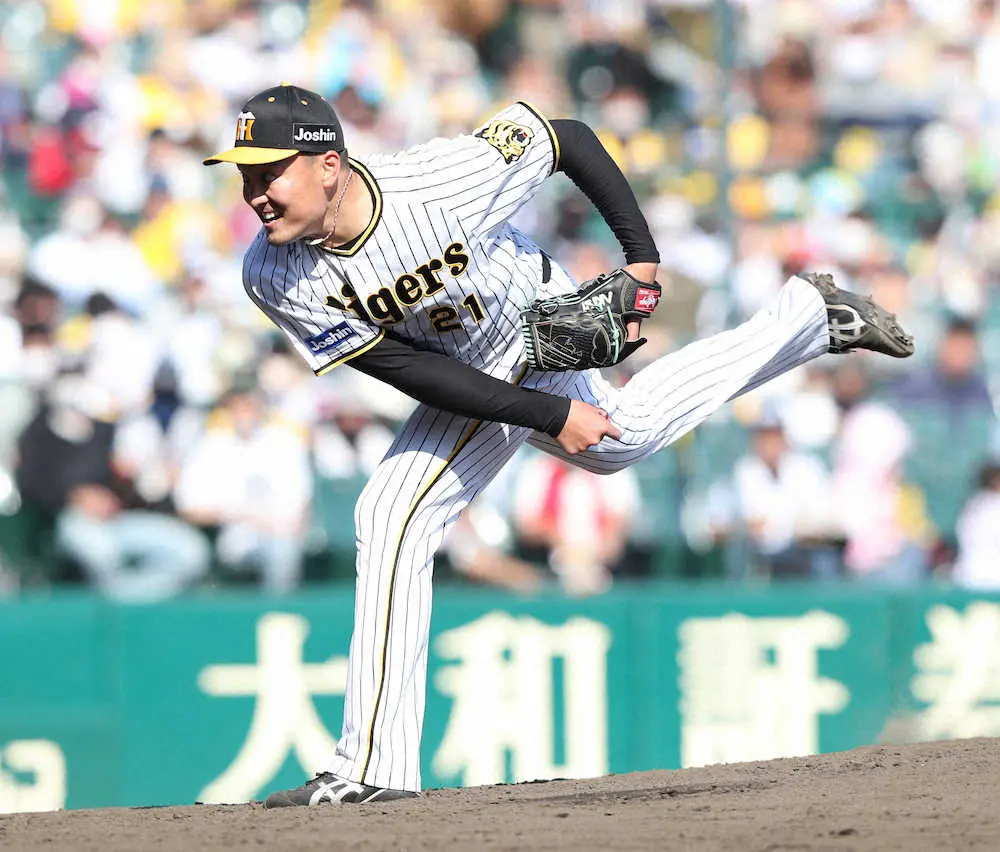 <神・ヤ>阪神先発・秋山(撮影・平嶋 理子)
