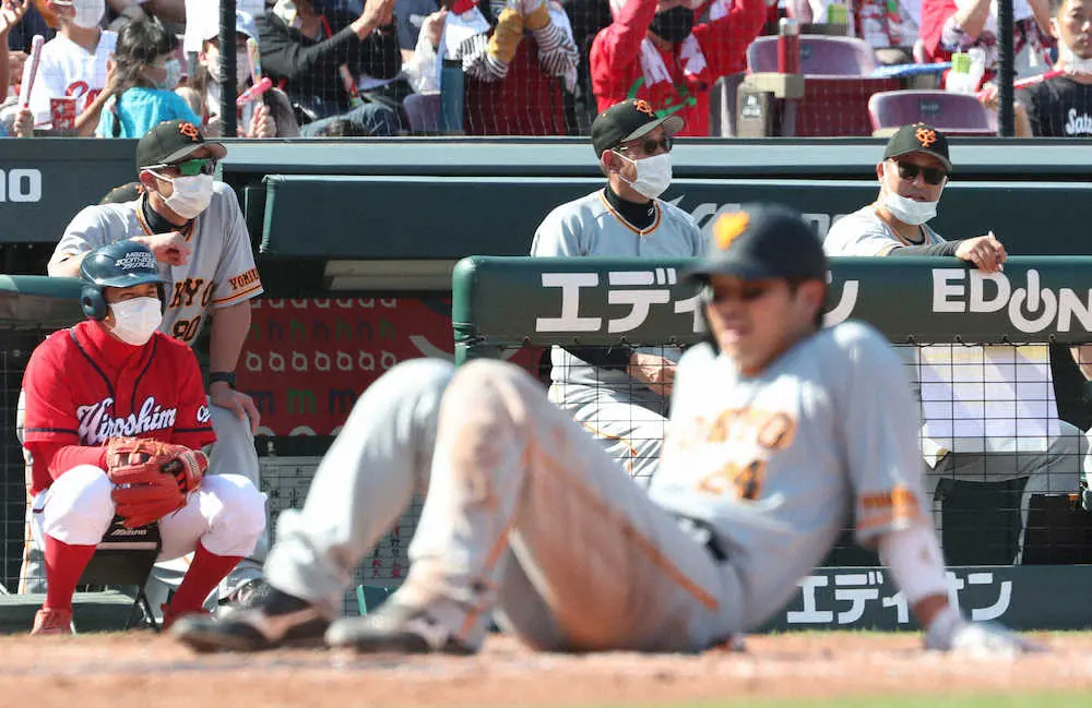まずは3回だ。先頭の大城が四球で出塁。犠打などで2死二塁とし、吉川は右前へ弾き返した。だが、右翼を守る広島のドラフト3位・中村健の好返球に二走・大城が本塁憤死。巨人は先制点を逃した。
