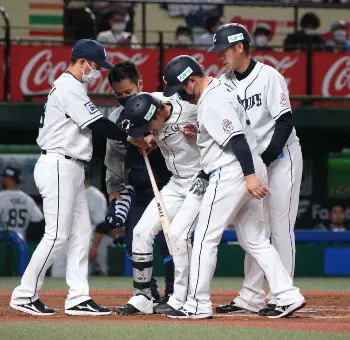 「1番・遊撃」でスタメン出場した源田は3回2死からの打席で、内角球を打った打球が右足首付近を直撃。ちょうどガードがない部分で、倒れ込んだまま自分では歩けずに抱えられるようにしてベンチへ。治療を受けた後、打席に戻った源田は左飛に倒れ、4回の守備から交代した。