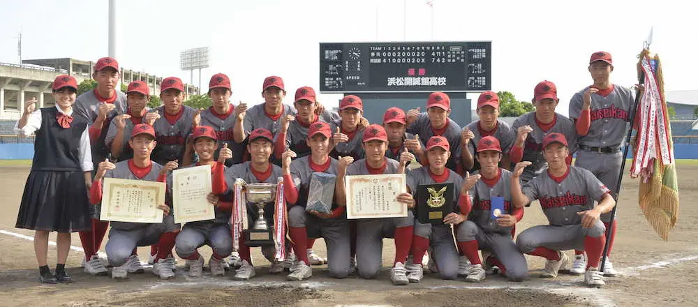 第69回春季東海地区高校野球大会(21日から愛知・小牧市民、刈谷)の組み合わせ抽選会が10日、愛知県名古屋市内で行われ、静岡県勢両校の対戦相手が決まった。創部25年目で初王者に君臨した初出場の浜松開誠館(1位)は愛工大名電(愛知(2))と、4大会ぶり21度目出場の静岡高(2位)は岐阜第一(岐阜(1))に挑む。