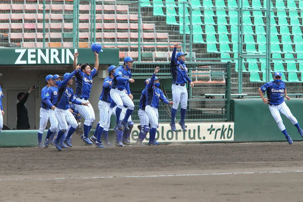 エナジック(沖縄・うるま市)が劇的なサヨナラで大会初勝利を挙げた。1点を追う9回2死一、二塁に代打の平安郁太(ひらやす・いくた、23)が中越え2点二塁打を決めて9―8と逆転。NTT東日本(東京都)を8―3で下して初勝利した西部ガス(福岡市)とともに準決勝進出に望みをつないだ。