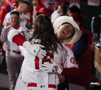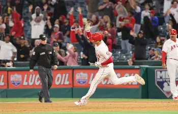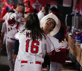 この日、第1打席は右飛、第2打席は中前打。第3打席は6回。レイズの2番手・ビークスに対し、まずは無死一塁からトラウトが左越え2ラン。さらに続く大谷が初球のカットボールをとらえて左中間へソロを放ち、2者連続アーチとなった。大谷とトラウトのアベックアーチは今季初。データ計測システム「スタットキャスト」によれば、打球速度109・4マイル(約176・1キロ)、打球飛距離407フィート(約124・1メートル)、打球角度22度だった。