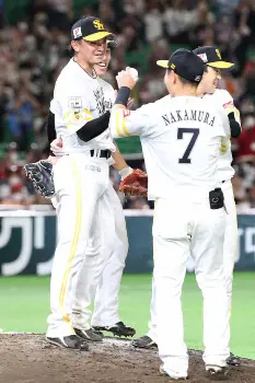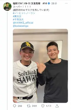 ソフトB・又吉 東浜&千賀のノーノーコンビを激写!お立ち台前の投稿にファンも驚き「仕事が早い!」