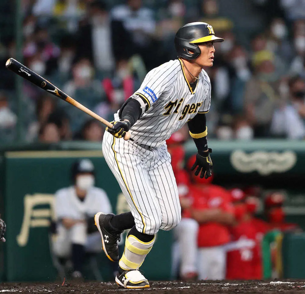 阪神の佐藤輝が初回1死一、二塁から同点の右前打を放った。広島先発の九里が、カウント2ボール1ストライクから投じた143キロ直球をとらえた。強烈な打球が一、二塁間を抜け、二塁走者の中野が生還。先発の秋山が初回に3安打を浴びて1点を失ったが、すぐに追いついた。