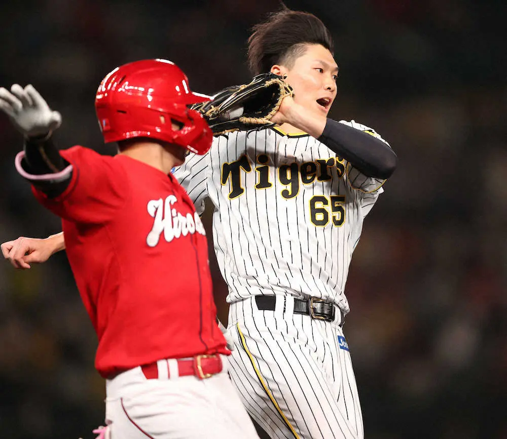 阪神・湯浅は1点劣勢の8回に登板し、無失点でつないだ。2死から坂倉に左前打され、小園にも右前打。一、三塁で代打・松山を一ゴロに退けた。
