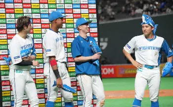<日・ソ(9)>お立ち台の4人(左から)浅間、万波、松本剛、杉谷(撮影・高橋茂夫) Photo by スポニチ 日本ハム新庄監督「今日、日曜日だし。面白いかなと」無安打の杉谷をヒー… ギャラリーで見る この記事のフォト 2022年05月15日の画像一覧 もっと見る 2022年05月15日の画像をもっと見る