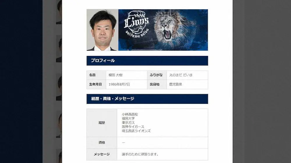 西武が公式サイトに新設した「球団スタッフ名鑑」(球団提供) Photo by 提供写真 西武が公式サイトに「球団スタッフ名鑑」を新設 新加入のセギノール氏、… ギャラリーで見る この記事のフォト 2022年05月16日の画像一覧 もっと見る 2022年05月16日の画像をもっと見る