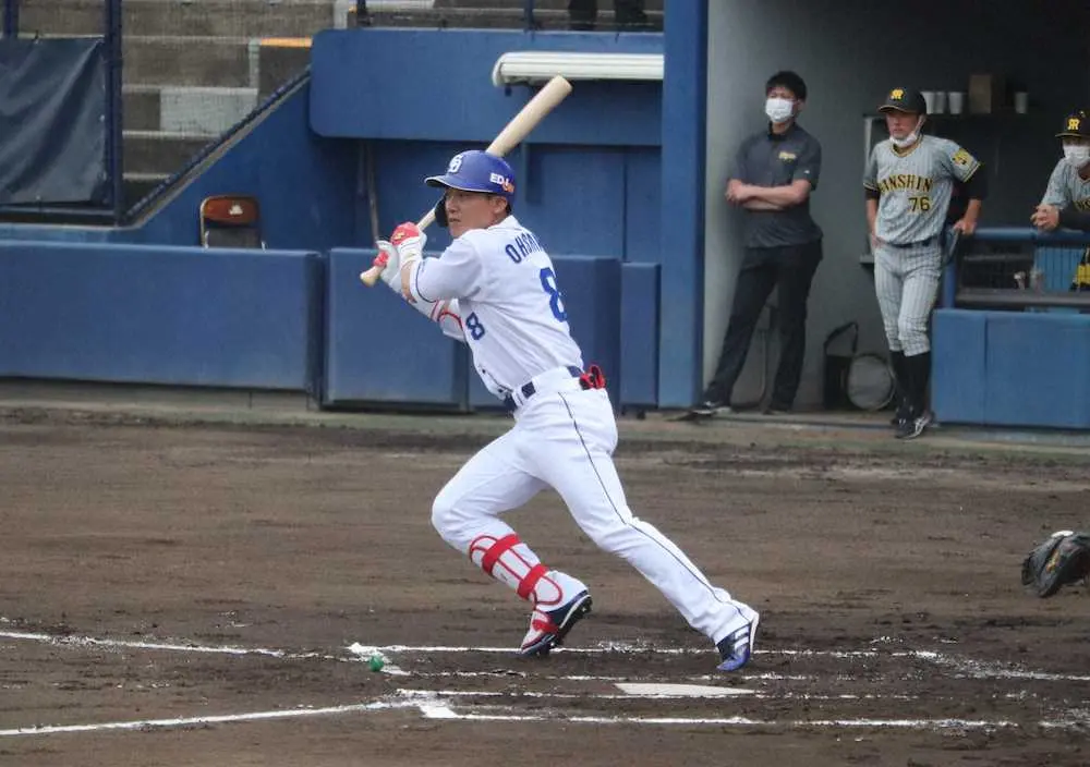 4月27日の阪神戦(甲子園)で右膝付近に死球を受け、打撲のため29日に登録を外れた大島は「1番・中堅」で出場し、初回先頭の第1打席でいきなり阪神・桐敷の外角直球を左前打してファンを沸かせた。