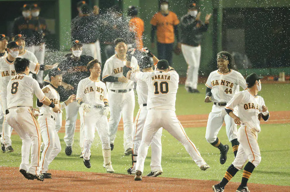 試合前時点で打率はリーグトップの・341を誇る吉川が肩甲骨の骨挫傷から1軍復帰。原監督は1番から丸、ウォーカー、吉川、岡本和、ポランコ、中島と上位打線を形成。その打線は8回までわずか3安打だったが、9回につながった。先頭のウォーカーが右前打、吉川が右前打でつなぐと、岡本和は四球をもぎとった。無死満塁となったところで、広島は好投の先発・遠藤から2番手のターリーに交代したが、1度火が付いた巨人打線の勢いは止まらない。ポランコが左前適時打でまず1点、そして中島がカウント1ストライクからの2球目、真ん中に来たチェンジアップを振りぬいた打球は左中間を深々と破った。2者生還。プロ20年目の中島にとって通算8度目のサヨナラ打で、巨人移籍後は初となる逆転サヨナラ打を左中間へ放った。
