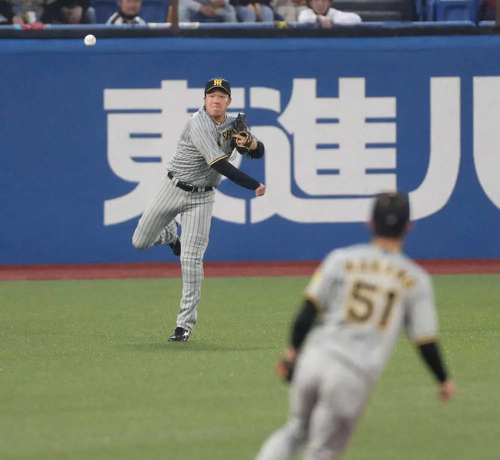 阪神・大山は肩で西勇のピンチを救った。2回無死一塁から仕掛けたヤクルトのヒットエンドラン。中村の左前打で一塁走者・村上は三塁を狙ったが大山は出足鋭く捕球すると、三塁に素早くワンバウンド送球。村上をアウトにして、補殺を記録した。矢野監督も「流れの嫌なところで悠輔の送球とかもあった」と左足が万全でない中、不慣れなポジションでもこなす姿勢を評価した。