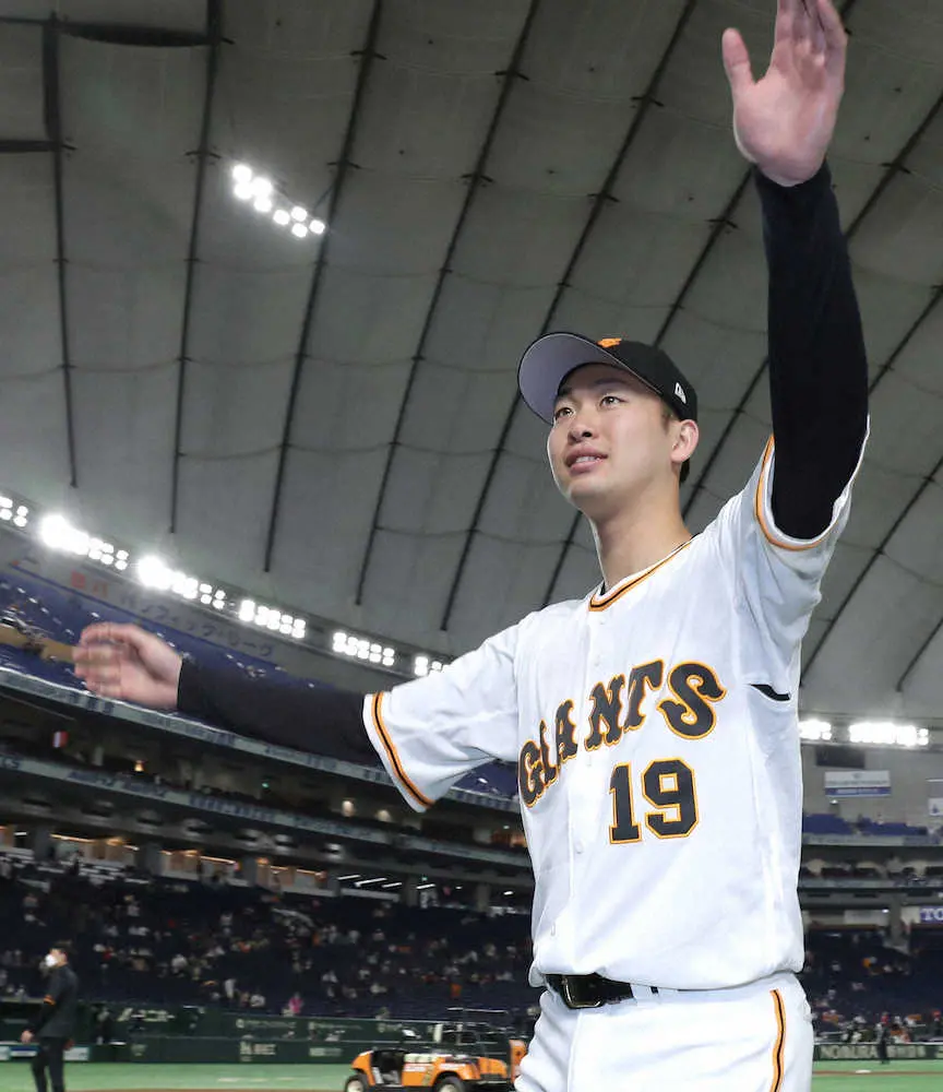 「先発するの3回目やったんですけど、なかなか勝ち切れないなかで、東京ドーム初勝利はとてもうれしいです」。投げては1失点投球、打っては安打と犠打成功で1打数1安打、フィールディングも軽快な姿は桑田真澄投手チーフコーチ(54)の現役時代をほうふつさせるが「桑田コーチから投げる以外のところっていうのをキャンプから本当に“自分を救うプレーなので”って言われてたので。ここまではしっかりとできてるかなと思います」と山崎伊。ホーム初勝利とあって、インタビュアーからファンへの自己紹介を兼ねて次への意気込みを…と促されると「2年目の山崎伊織です。これからもチームの勝利に貢献できるように腕振って頑張りま~す!よろしくお願いしま~す!」と笑顔、笑顔だった。
