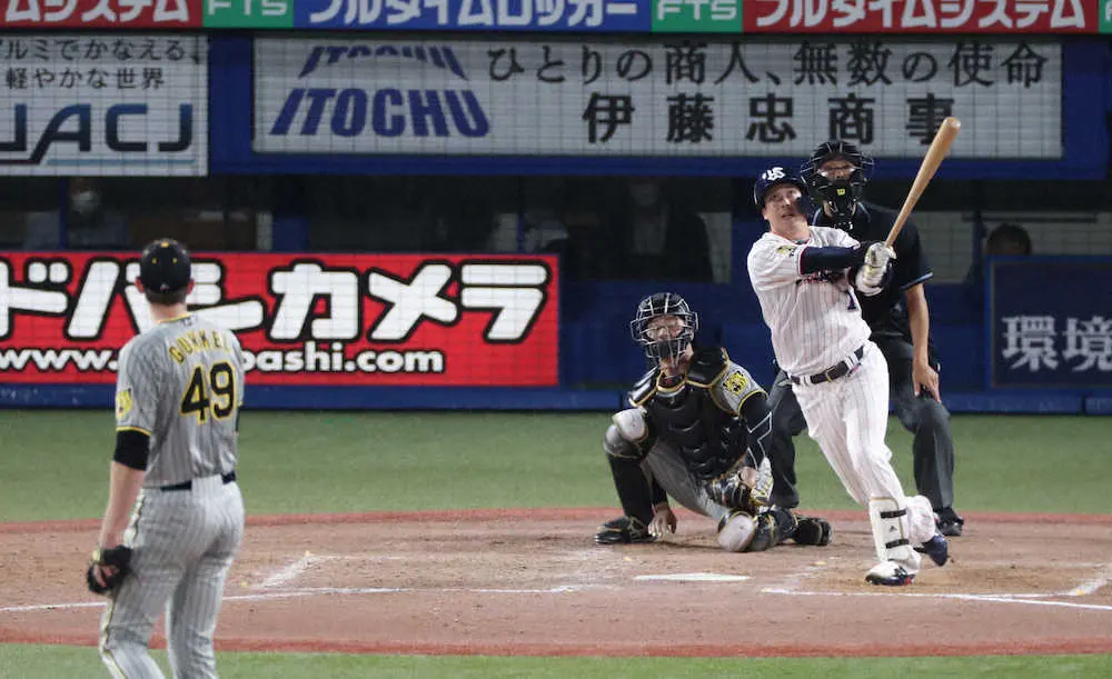 ヤクルト・山田が一気にギアを上げてきた。5回2死一塁。左中間フェンス直撃の先制二塁打。7回2死三塁では「追い込まれていたので、食らいついていこう」と右中間へ適時二塁打を放った。