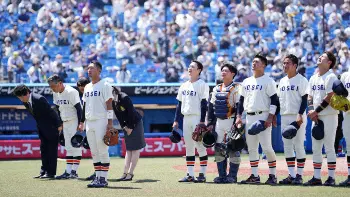 <東大・法大>最終戦を終え、客席にあいさつする法大・斉藤大(手前)ら(撮影・木村 揚輔) Photo by スポニチ 法大が東大に連勝 主将・斉藤大輝は2安打1打点 7勝5敗1分けでリーグ戦終… ギャラリーで見る この記事のフォト 2022年05月22日の画像一覧 もっと見る 2022年05月22日の画像をもっと見る