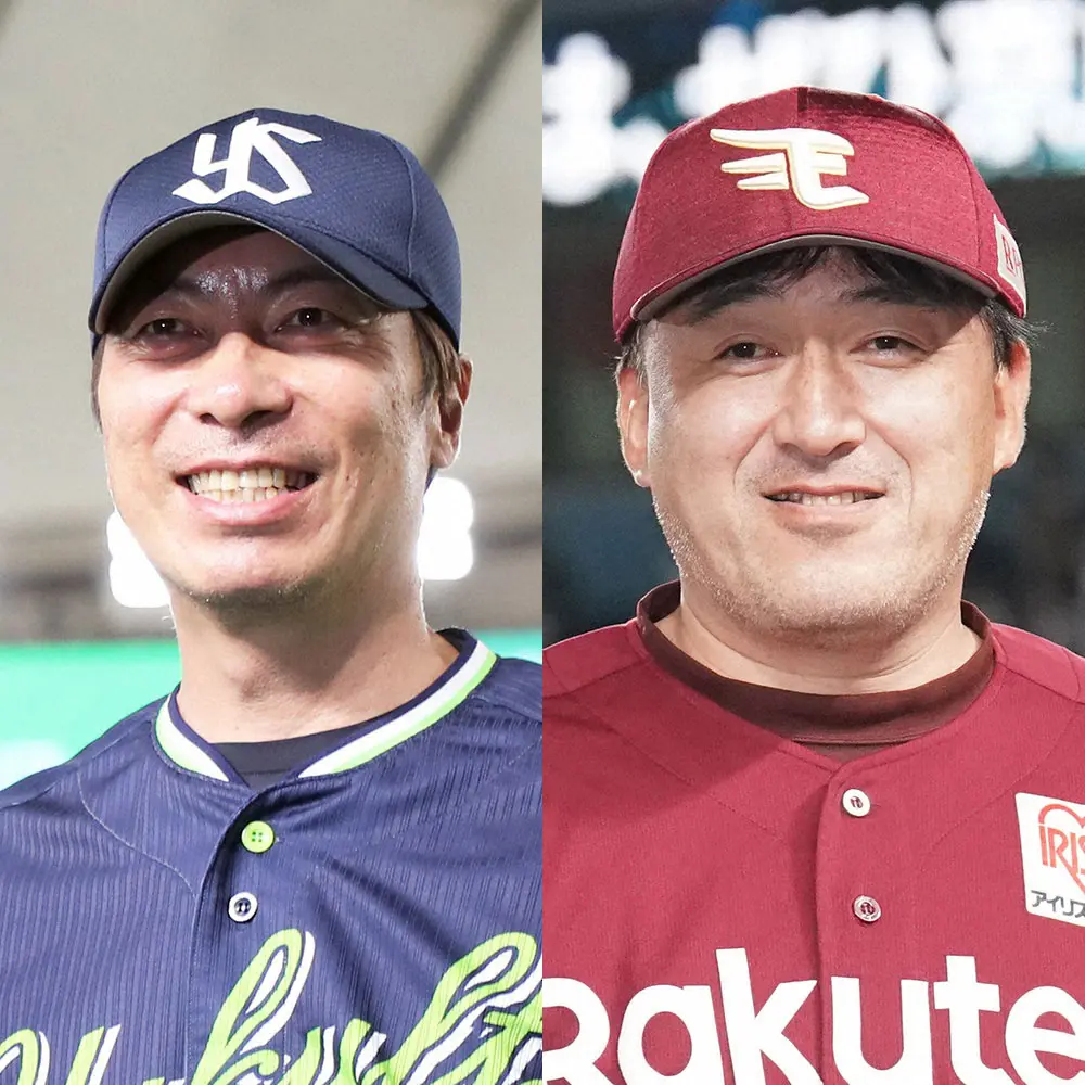 セ・リーグ首位のヤクルト・高津監督(左)と、パ・リーグ首位の楽天・石井監督