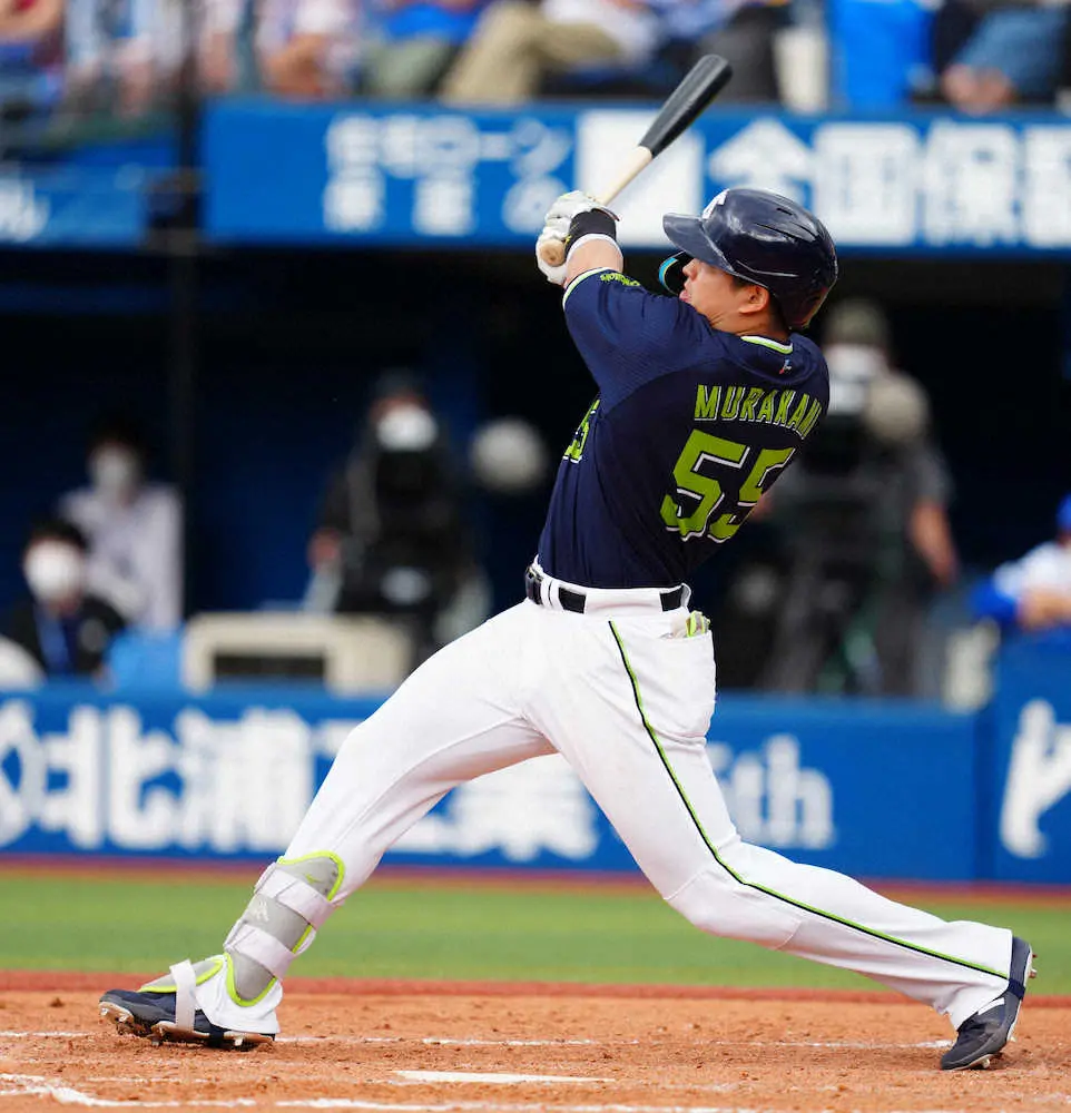 ヤクルトの4番・村上が貴重な2打点で勝利に貢献した。初回1死三塁で二ゴロ。5回2死二塁では「何とか一本、という気持ちで甘い球を待っていた。仕留められた」と右越え適時二塁打を放った。