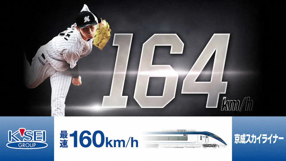 京成電鉄が運行する空港アクセス特急「京成スカイライナー」の最高速度も時速160キロで、5月27日阪神戦(ZOZOマリン)から本拠地で佐々木朗が160キロ以上を計測した際に、来場者プレゼント企画と「京成スカイライナー」オリジナルビジョン演出を実施する。