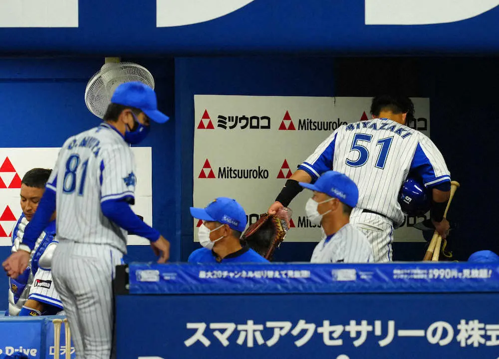 DeNA宮崎は左太腿裏の張り再発で途中交代
