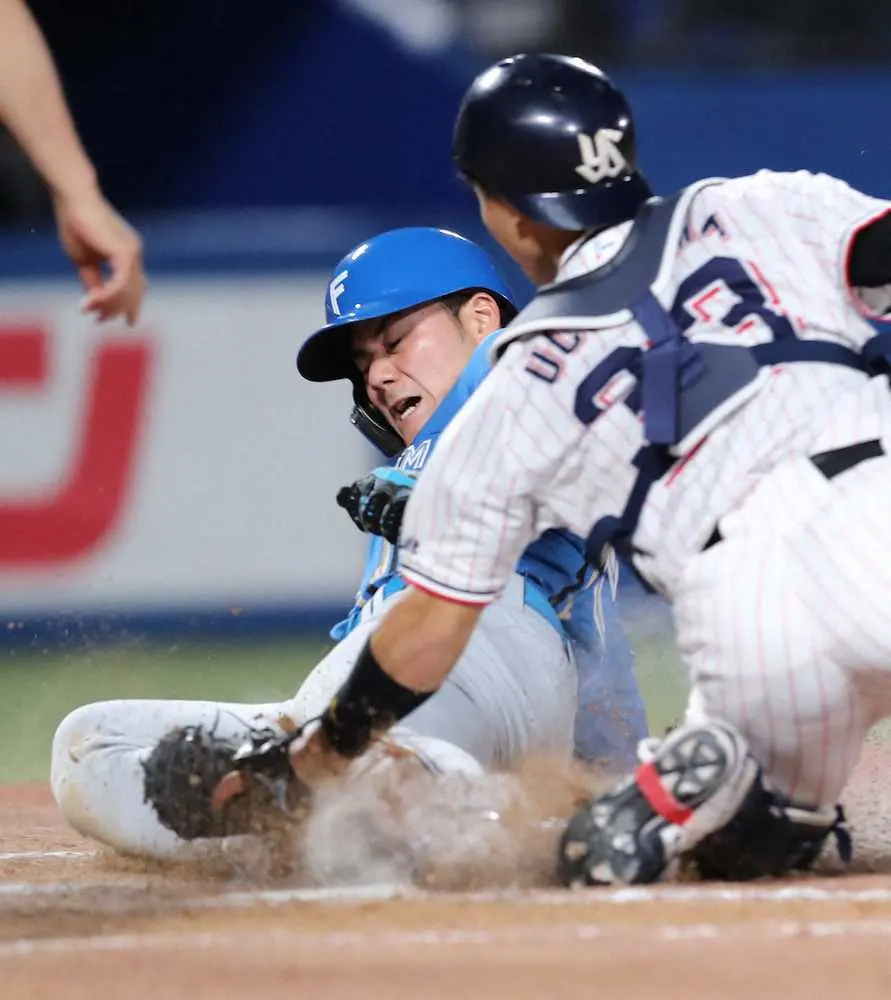 タッチプレーは微妙なタイミング。清宮はベンチにリクエストを求めたが、指揮官は「ミス。そういうところじゃない。アウトでしょ」と拒否した。