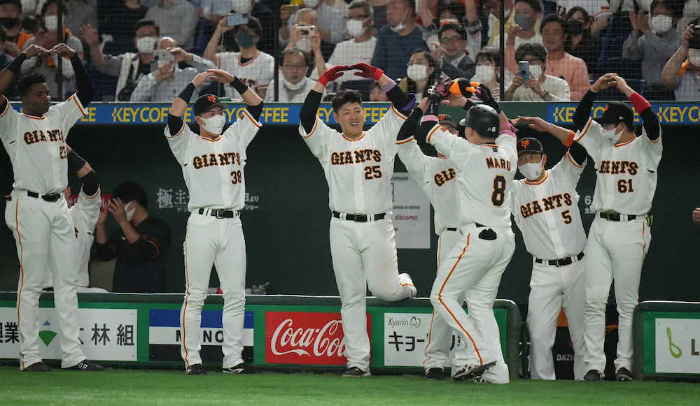 4回先頭で打席に入ると。ここまで完全に抑えられていた山崎福の初球123キロのスライダーをジャストミート。打球は低い弾道で右中間席ギリギリに飛び込んだ。反撃ののろしとなったこの日チーム初安打が本塁打となり、歓喜の巨人ベンチも丸ポーズで出迎えた。