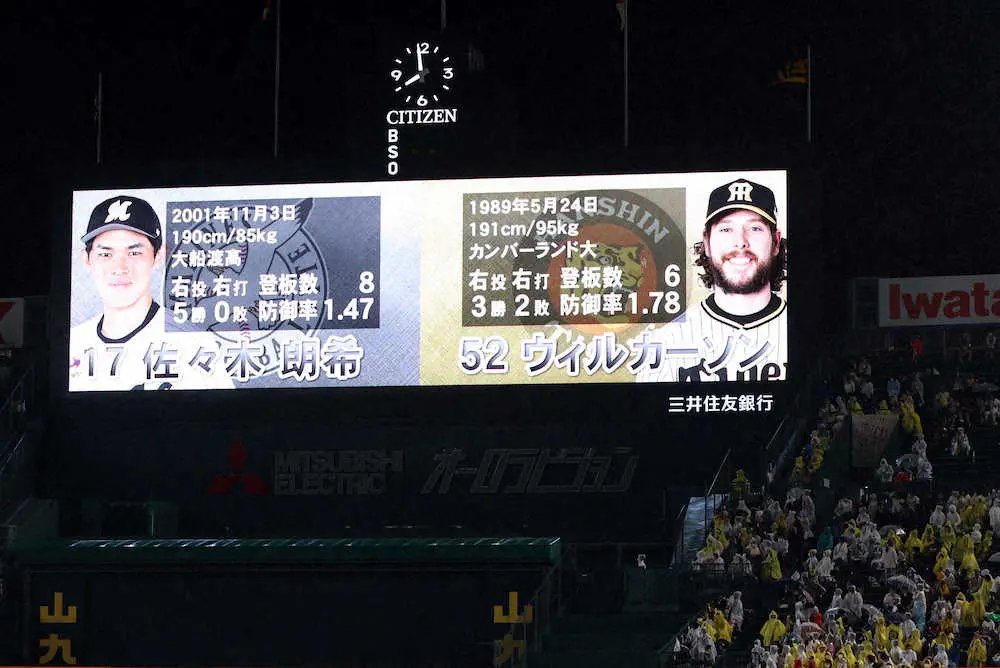<神・楽>甲子園に佐々木朗の予告先発が表示される(撮影・北條 貴史)