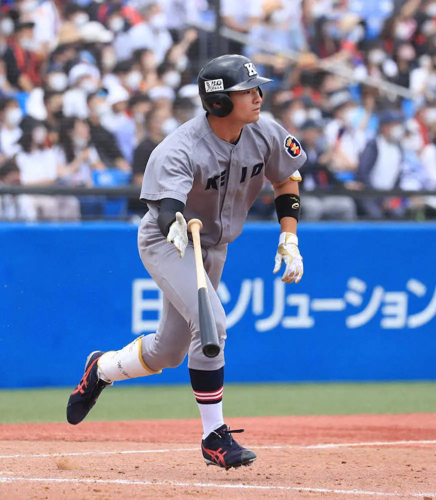 「昨年秋の神宮大会で本塁打を打てて自信になった。きょうも右方向にうなく打てました」と話し、報道陣から打てる要因を聞かれると指揮官に「どうなんでしょう?」と逆質問。「素質が開花したってことだよ」と言われ「そうみたいです」と笑わせた。打点もトップの上田(明大)の15打点にあと1。“2冠”に向けて2回戦に臨む。