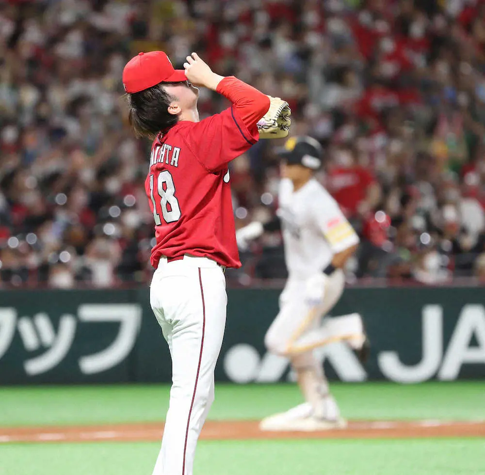 一挙5安打6失点を許した2回に「今季初」の制球ミスが連続した。1死二、三塁で迎えた柳町の4球目に直球が背中側を通る今季初の暴投となり同点。続く5球目を左前に運ばれて勝ち越された。続く周東にはカットボールが引っかかり今季初の死球。直後の渡辺の左越え3ランにつながった。2死後には牧原大に右翼席へソロ本塁打を浴びて1イニング2被弾。4回1死無走者からは渡辺に2打席連発となる左越えソロと強振され続けた。