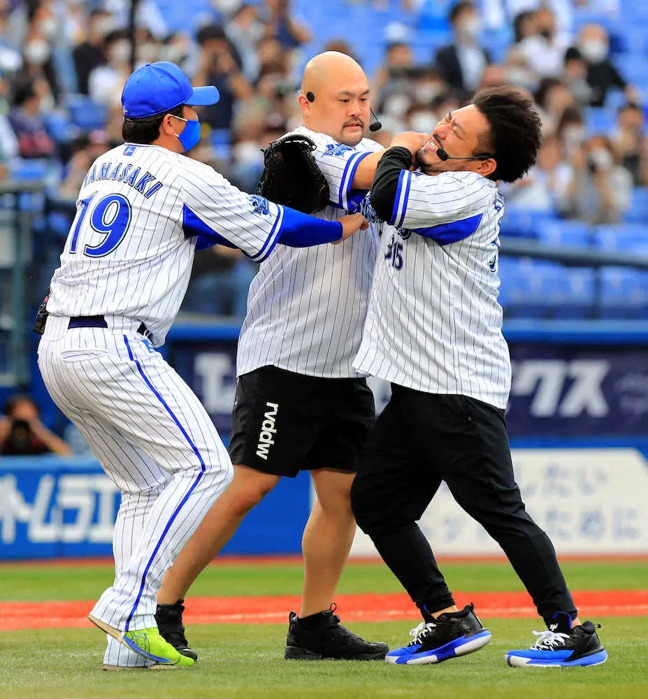 <D・オ>セレモニアールピッチで、鬼越トマホークの金ちゃんの投げたボールが坂井良多の頭上を通過(撮影・久冨木 修) Photo by スポニチ 鬼越トマホーク始球式 捕手役のDeNA・山崎がケンカ芸仲裁も…「ポテトチッ… ギャラリーで見る この記事のフォト 2022年05月31日の画像一覧 もっと見る 2022年05月31日の画像をもっと見る