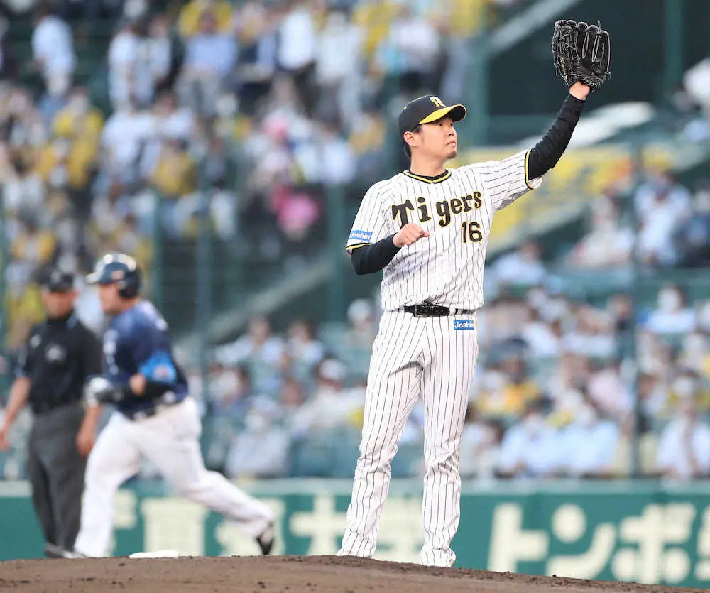 <神・西>2回、山川に先制の本塁打を浴びる西勇(撮影・平嶋 理子)