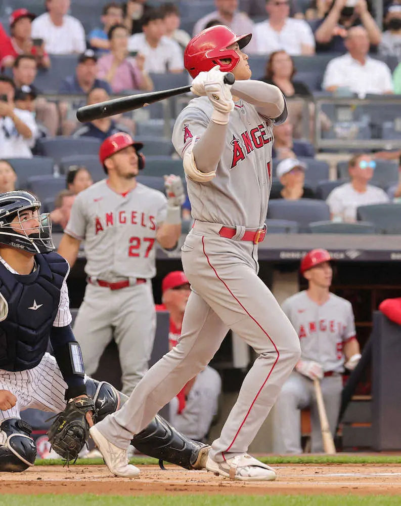 <ヤンキース・エンゼルス>6回2死、大谷は右翼線に二塁打を放つ(撮影・篠原岳夫) Photo by スポニチ 大谷翔平 本塁打“捕られた”!初回に中堅に大飛球、ヤ軍ジャッジがジャン… ギャラリーで見る この記事のフォト 2022年06月01日の画像一覧 もっと見る 2022年06月01日の画像をもっと見る