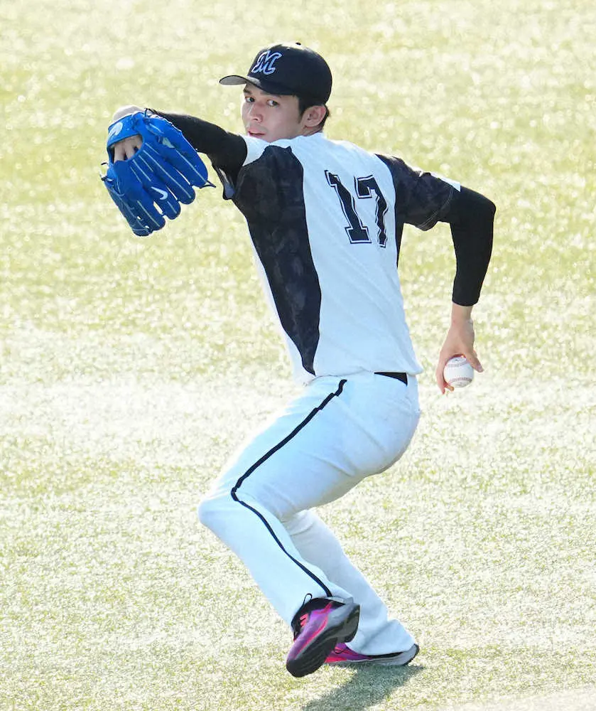 3日の巨人戦(東京ドーム)に先発するロッテの佐々木朗が神宮でキャッチボールなどを行った。