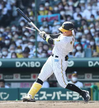 阪神・佐藤輝 バット折りながら中前打で大山の先制打呼び込んだ!今季最長8試合連続安打を記録