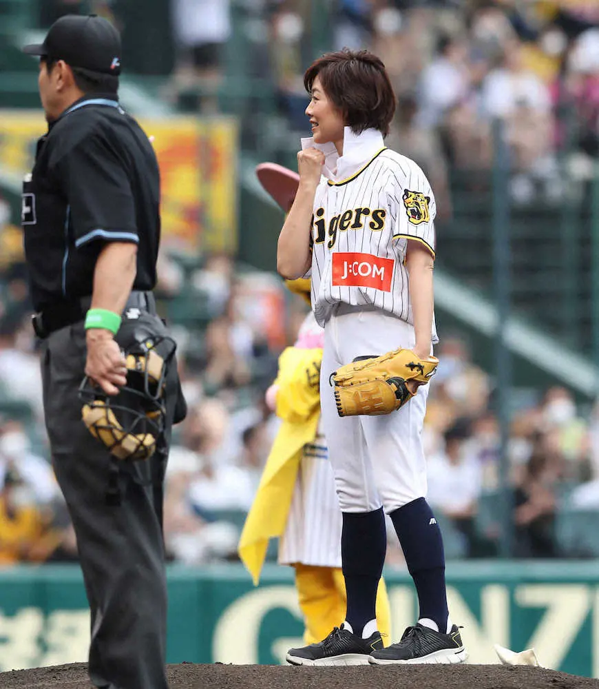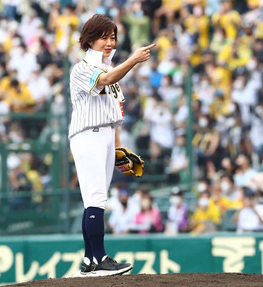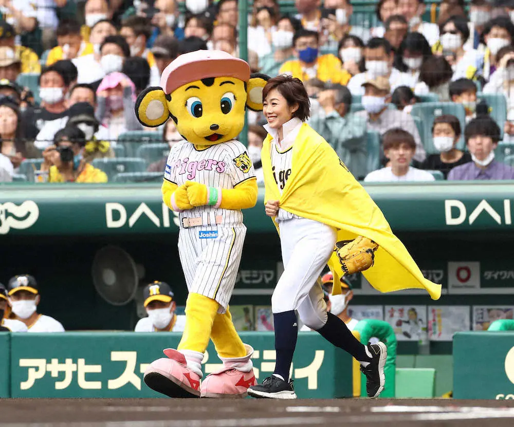 <神・日>「阪神愛」と書かれた黄色のマントを着用して始球式に登場した有働由美子アナウンサー(撮影・坂田 高浩) Photo by スポニチ 虎党・有働アナ驚きウエア “阪神愛”の始球式「結婚式だと思って、ウエデ… ギャラリーで見る この記事のフォト 2022年06月05日の画像一覧 もっと見る 2022年06月05日の画像をもっと見る