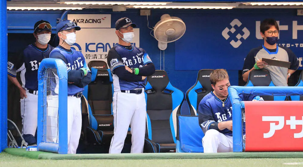 <ヤ・西>沈黙する辻監督(中央)と西武ベンチ(撮影・尾崎 有希)
