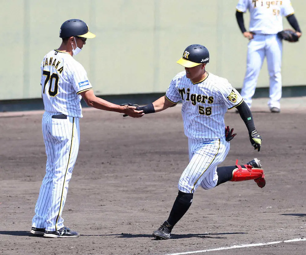 <ウエスタン 神・オ>4回1死一塁、前川(58)は左越えに2点本塁打を放ち平田監督(中央)らナインに迎えられる (撮影・後藤 大輝) Photo by スポニチ 阪神、ウエスタン2位タイの13連勝! 平田2軍監督「ビッグフライ連発やな。… ギャラリーで見る この記事のフォト 2022年06月09日の画像一覧 もっと見る 2022年06月09日の画像をもっと見る