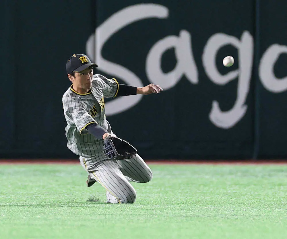 阪神・近本がファインプレーでチームを救った。2回無死一塁で三森が放った中堅前への打球に全速力で前進し、懸命に右手を差しのばしながらスライディングキャッチで好捕した。
