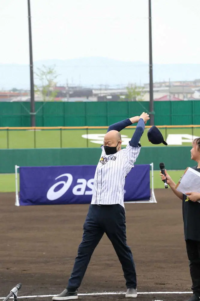 学童軟式野球くら寿司トーナメント開会式 佐野SD笑顔の秘策“ピッカリ投法”披露