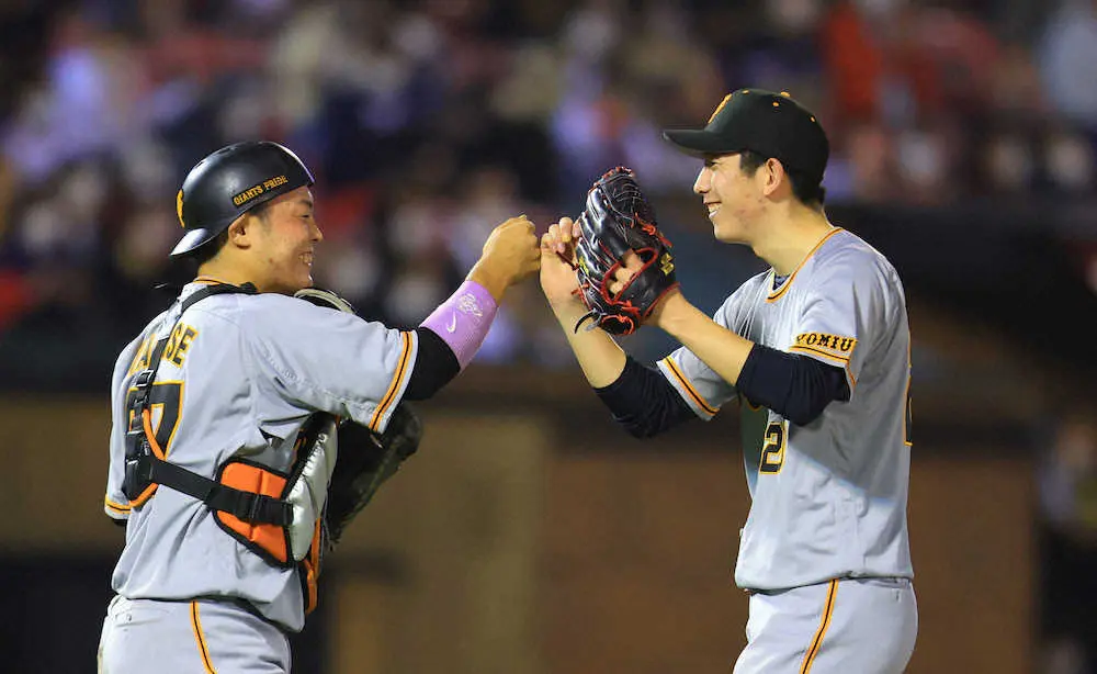 高卒3年目捕手の巨人・山瀬が、好リードで戸郷のプロ初完投勝利を演出。戸郷は「あれだけの配球をしてくれたんで、山瀬のおかげかな」と感謝した。