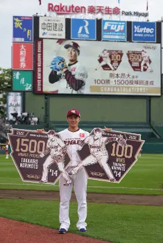 <楽・巨>1500投球回と100勝を達成した則本はボードを手に笑顔(撮影・沢田 明徳) Photo by スポニチ 楽天・則本「ちょっと感動しています、自分に」 巨人戦でプロ通算100勝と… ギャラリーで見る この記事のフォト 2022年06月12日の画像一覧 もっと見る 2022年06月12日の画像をもっと見る
