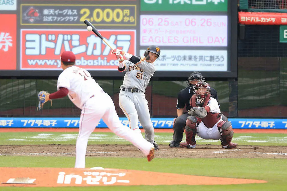 巨人の八百板卓丸外野手(25)が3年前まで在籍した古巣・楽天戦(楽天生命パーク)で「6番・左翼」に入り、移籍後初スタメン。元同僚の則本昂大投手(31)から2安打を放って猛アピールした。
